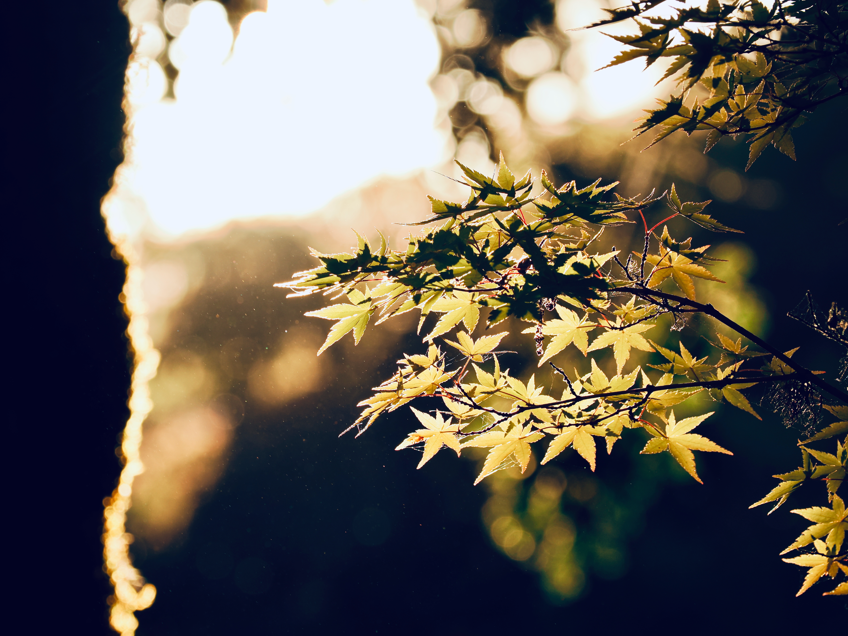 brilliantly backlit Japanese maple leaves